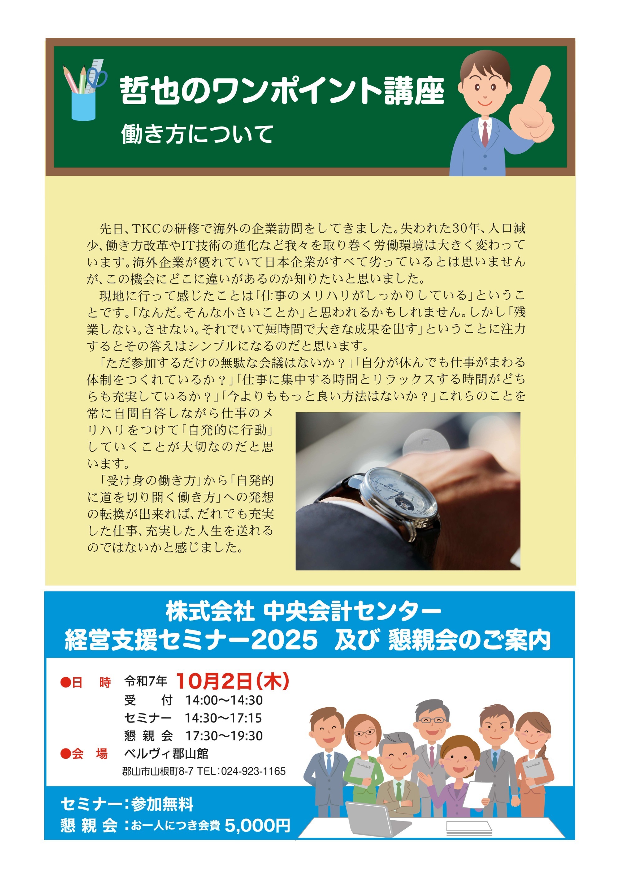 内容は関与先様の紹介、税務に関する情報等を掲載しております。